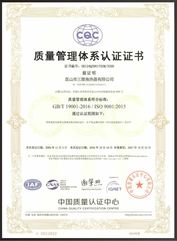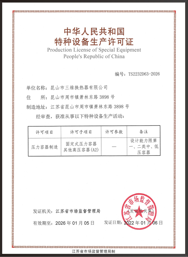 昆山市三維換熱器有限公司注冊(cè)資本5000萬元,資產(chǎn)2.1億元,公司地址位于江蘇省昆山市周市鎮(zhèn)蕭林東路3898號(hào),法人代表為顧安生,公司設(shè)有技術(shù)部、生產(chǎn)部、檢驗(yàn)部。